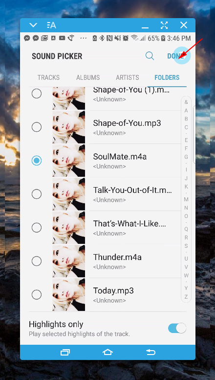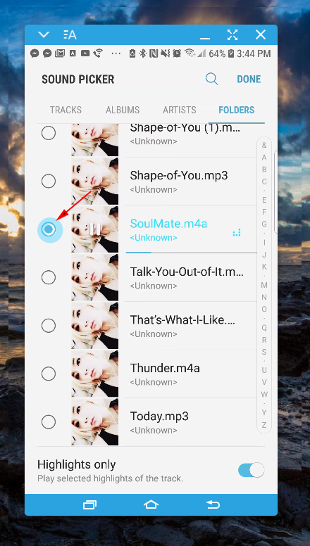 11.) Select your ringtone from the list. If the ringtone has an ID3 (information) tag, it will show up with the proper title, otherwise it will be displayed by its filename.