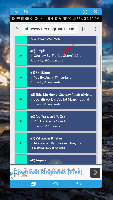 2.) On the web page select the top ringtones or search by title of your ringtone.