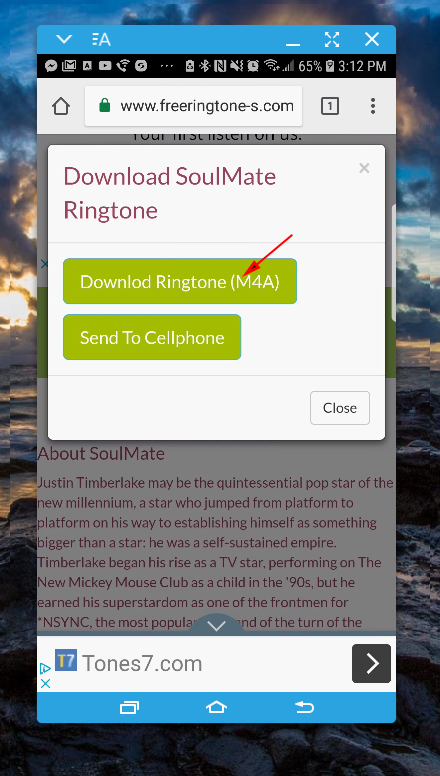 8.) On pop window click Download Ringtones(M4A)3. This will download to your device on "download" folder.
