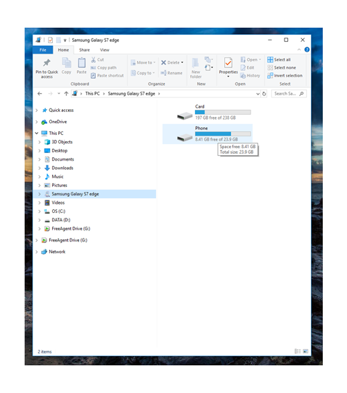2.) Open your device's storage. If you are using Windows, you can find your Android phone in the Computer/My Computer window . If you're using OS X, the Android phone will appear on your desktop, but you will need to download and install the Android File Transfer program first.