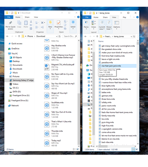 3.) Copy the ringtone file into the Ringtones folder. You can click and drag the file from your computer to the Ringtones folder, or you can right-click it and select "Copy" and then right-click in the Ringtones folder and select "Paste".